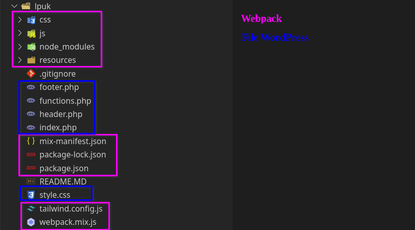 Dopo aver Inizializzato TailwindCss e AlpineJS come detto un un articolo precedente, per far capire a WP che il nostro è un tema, abbiamo bisogno di pochissimi file (anzi, tecnicamente basterebbe il solo file style.css con i commenti corretti, ma sarebbe un tema vuoto):